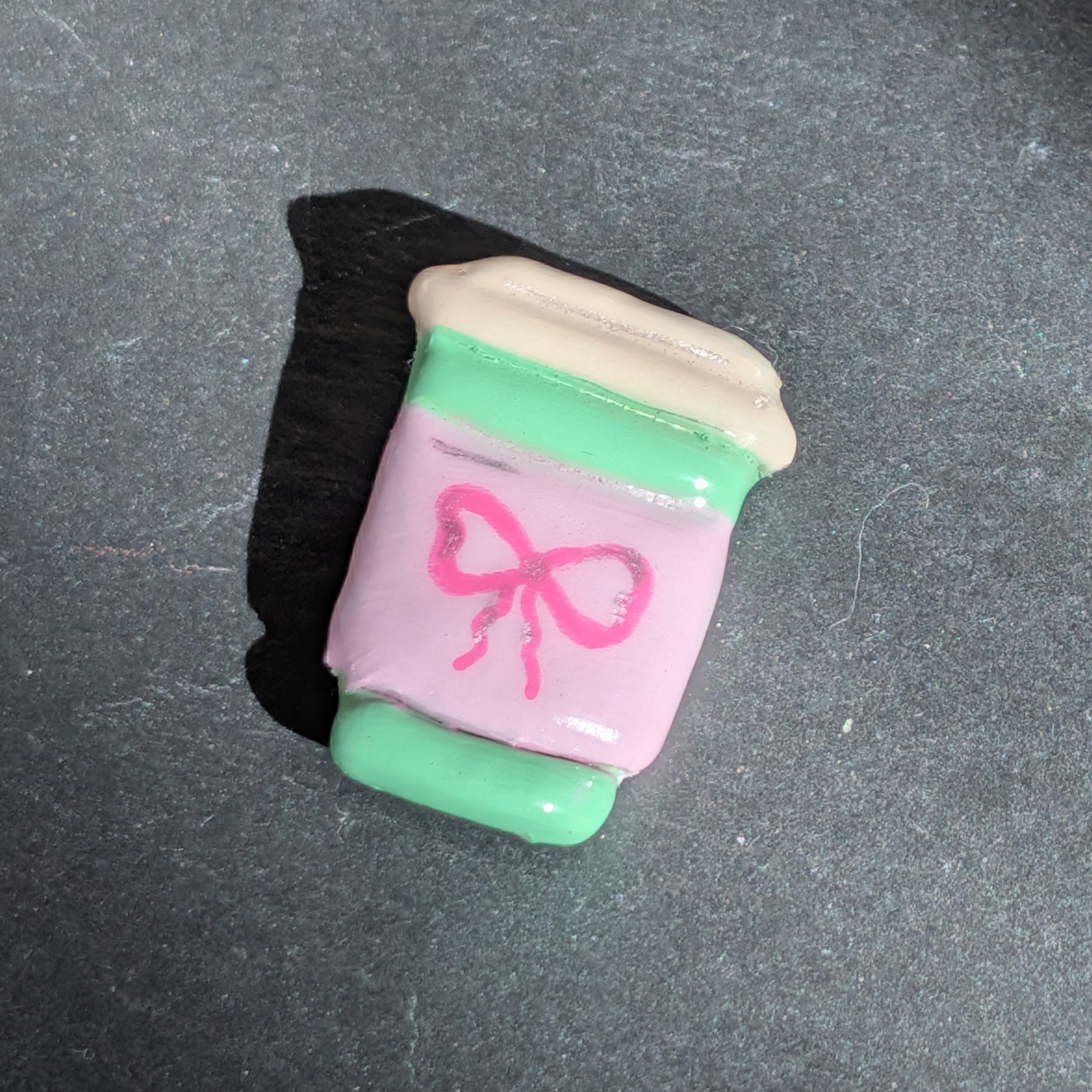Broșă confecționată manual din lut cu uscare la aer, pictata cu vopsele acrilice și lăcuită cu rășina UV pentru un plus de luciu și duritate.