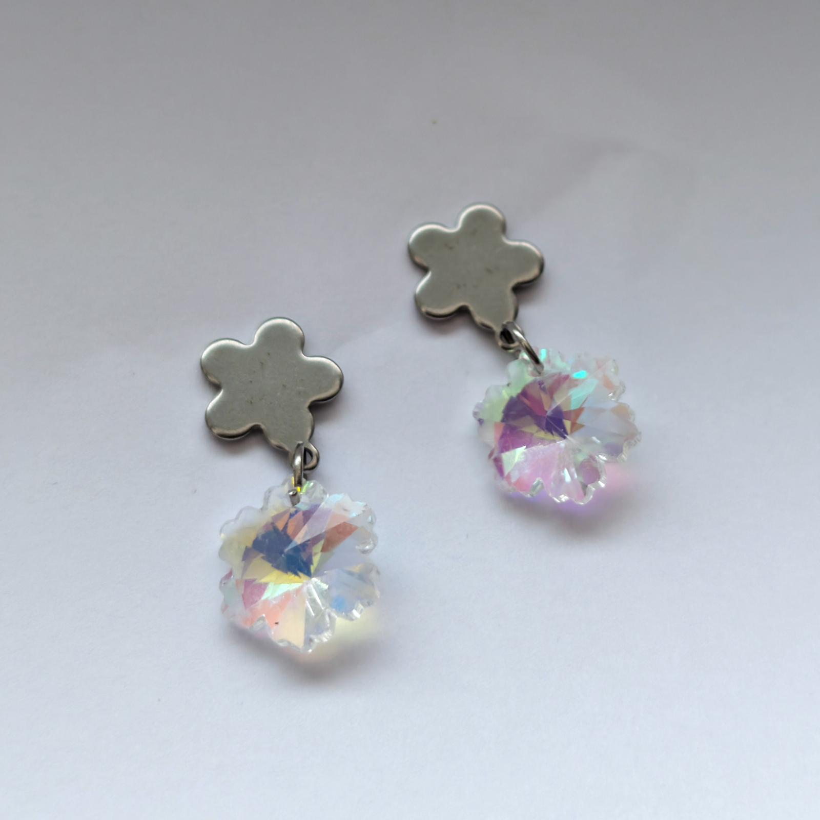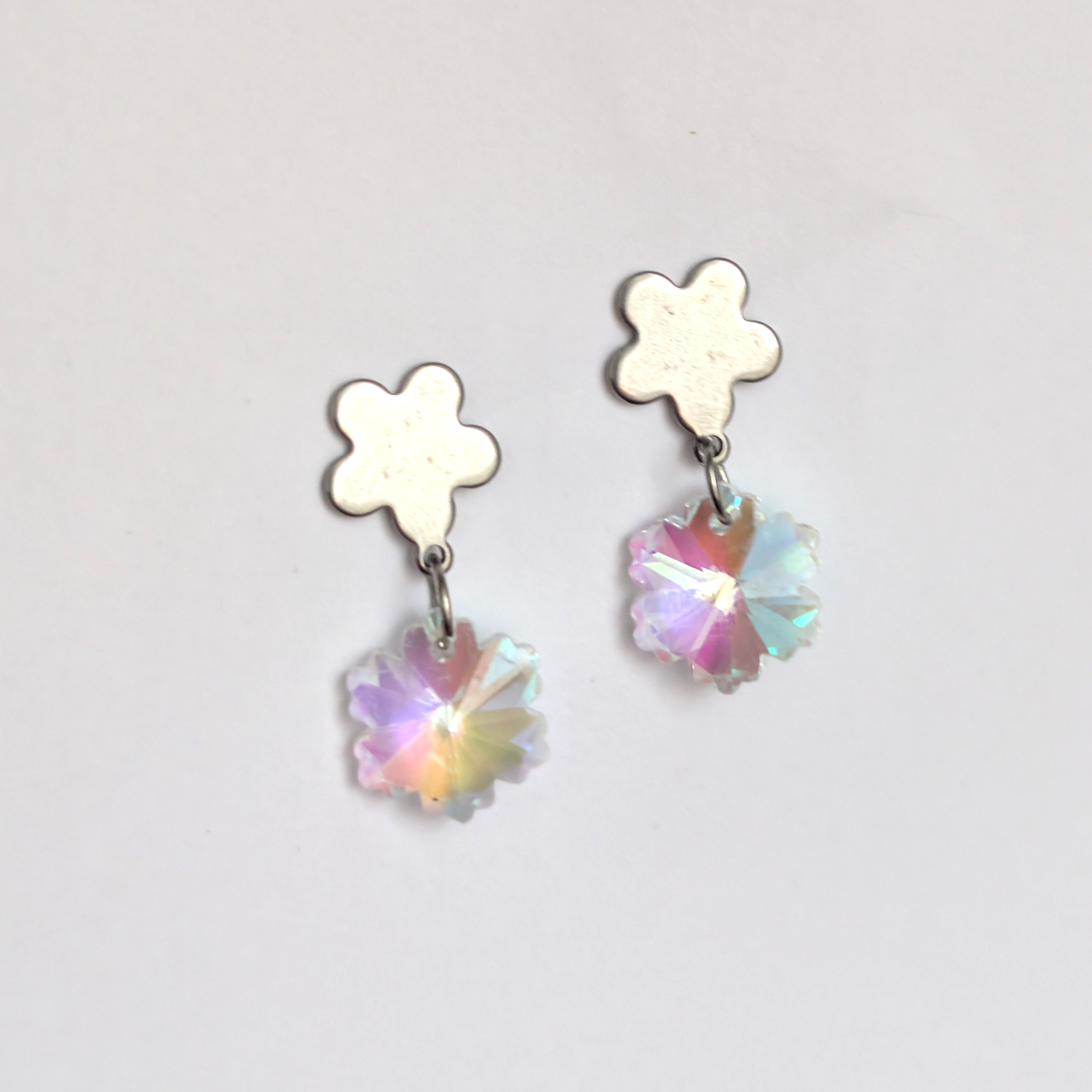 Cercei din sticlă și oțel inoxidabil.