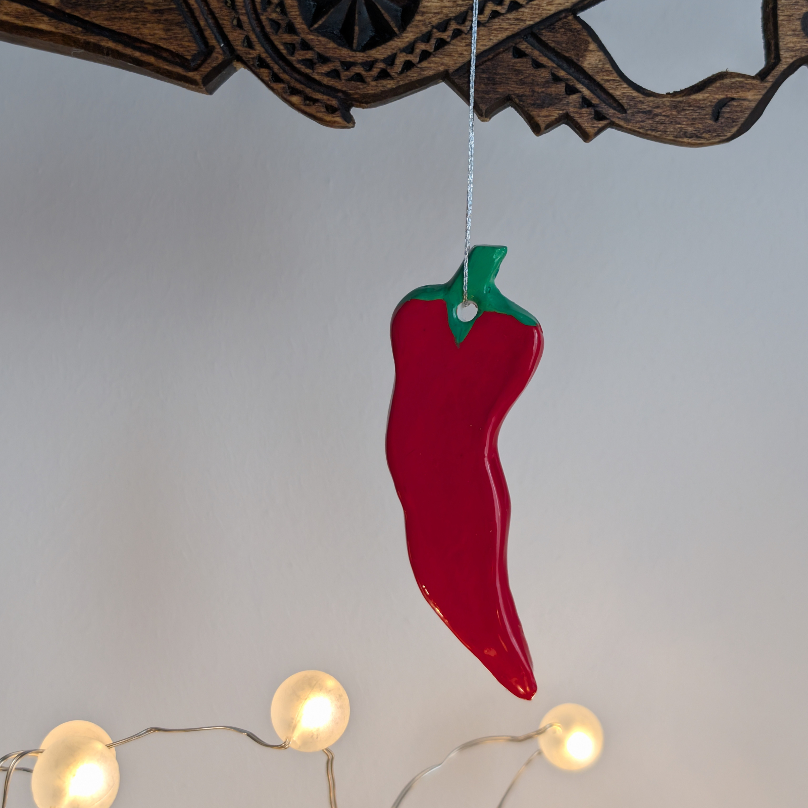 Decorațiune de Crăciun realizată manual din lut cu uscare la aer, pictată manual cu vopsele acrilice și acoperită cu rășină UV.